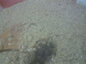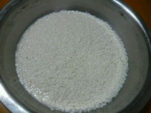 肥膘为粒;大米为较粗切含水较少之米浆。