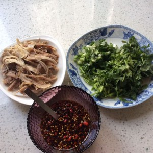佐料加蒜泥、小米辣(切碎)、味极鲜、花椒油、葱花、香菜;