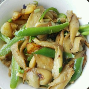 盛出土豆后倒入茄子加入蒜片炒,炒到快熟后加入煎好的土豆和青椒,再炒2分钟加入盐和鸡精,搞定~