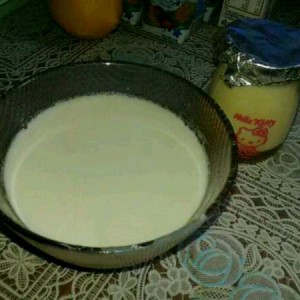 牛奶加热到冒泡,冷却到起一层奶皮,最好用全脂奶,奶粉冲好的也行,味道浓,容易凝结