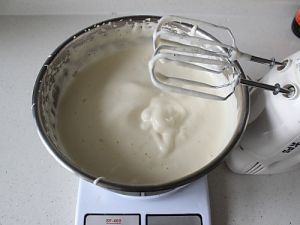 打至上图的样子,泡沫细腻体积变大,流动有阻力,表面的痕迹很难消失的状态。