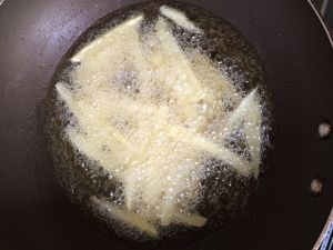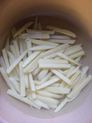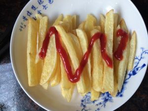 炸的土豆四周变硬即可。。加番茄酱可以吃了
