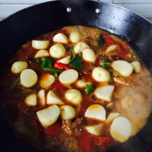 水开后五分钟在加入土豆,盖上盖子继续煮四十分钟左右(注意不要让水干了)然后就好了