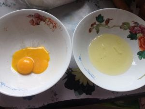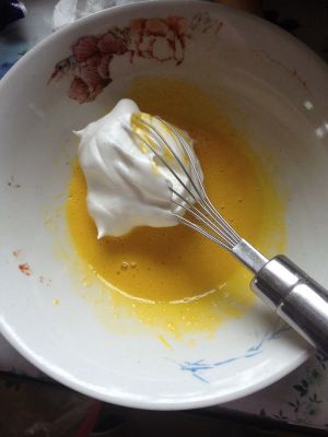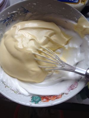 取三分之一蛋白放入蛋黄糊内,搅拌均匀
