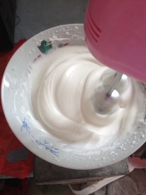 50g白糖分3次加入蛋白内,打至硬性发泡