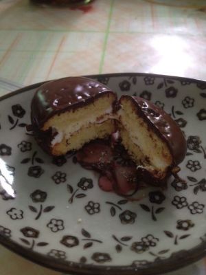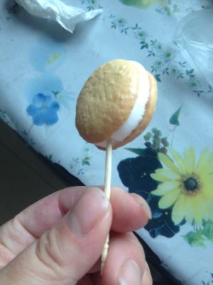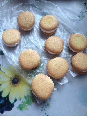 进微波炉转20秒,拿出后盖上另一片蛋糕胚