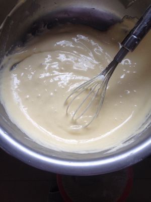 把搅拌好的糊倒入剩余的蛋白内,继续搅拌均匀