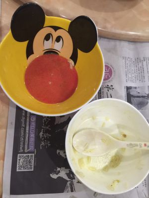把(五)灼好的菜,铺在器皿底部,不需要调盐。(因为娃的底部铺了,我忘拍了,所以拍大人的) (六)