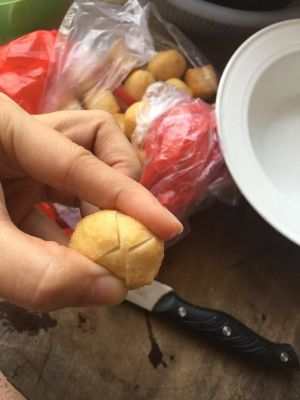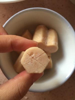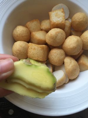 备材料:鱼蛋,我(圆形与正方形)部分起花,或对半切开。
