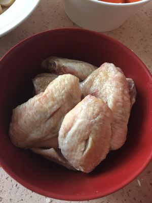 备材料:鸡中翅,每只中间下一刀。(可以用酱油腌制一下,也可以不腌制)