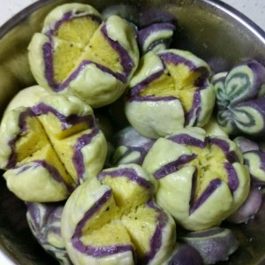 上锅蒸时,用刀把馒头顶端切十字切,或米字刀,干露出馅料。蒸二十分钟,出锅。