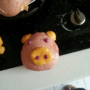 不好意思原谅我之前的和面和准备材料的图片没有,因为实在是一个人做这些,再拿手机拍照觉得不干净哦!嘻嘻,孩子比较喜欢吃小动物图案的馒头