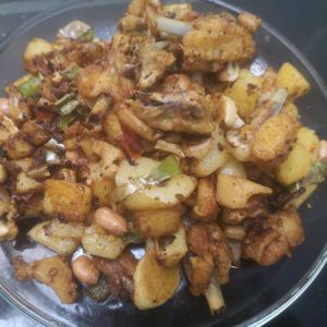 土豆藕,去皮、切丁、焯水、油炸至金黄