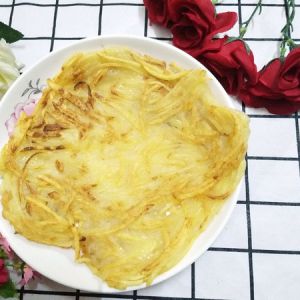 多功能锅通电,倒入少许的玉米油,加热后把土豆丝倒入