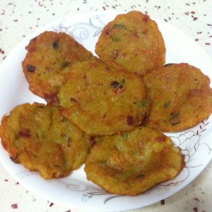 把之前准备好的材料全部倒在一个容器里充分搅拌均匀 加入面粉(土豆胡萝卜磨蓉时会产生大量汁液 加面粉可以让面糊更加粘稠 土豆饼容易成形 口感也更加松软)