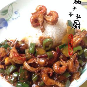 热锅凉油,依次放入葱、蒜、干辣椒爆香,放入葱香酱炒出香味后,放入龙虾肉、青椒、黄瓜,料酒(黄酒更佳)生抽、大火爆炒半分钟,然后放入蚝油、老抽(酱油也可以)少许,加高汤(水也可以)小火收汁(汤汁浓稠即可),放糖、鸡精调味(味道淡了可以放入少许盐)出锅浇在蒸好的米饭上即可!