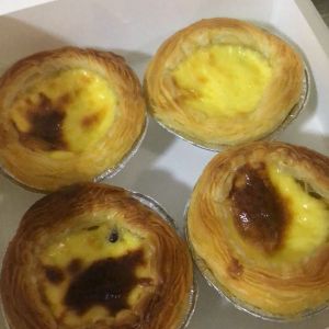 纯牛奶,炼乳,白砂糖,淡奶油隔水加热至融化,放凉之后加入三个蛋糕搅匀,在筛入低筋面粉,倒入七分满的挞水