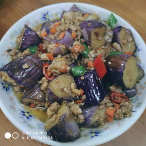 锅里下油,蒜末,辣椒,肉末翻炒,再下茄子,耗油,酱油,翻炒即可
