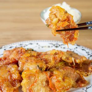 6.微黄、定型后捞出,油温再次升高后复炸至酥脆。