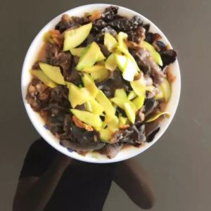 冷锅热油,下五花肉煸炒出香味,➕五香粉,料酒,蚝油,接着放入木耳,黄瓜继续翻炒均匀,➕鸡精,味精,排骨精,,酱油,盐调味即可……