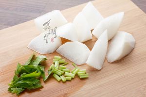 白萝卜滚刀切块,芹菜切末、姜切丝