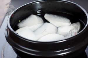 煮沸之后,再滚5分钟,确保牛肉丸煮透,加入事先切好的姜丝
