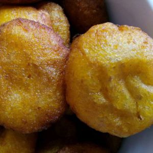 待油烧开,调成小火。再把揉成团南瓜饼放入油锅中炸至金黄。