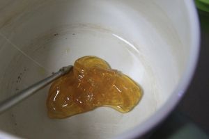 先用勺子或筷子取麦芽糖放到奶锅中,麦芽糖取的时候会黏一些,不过温度一高就融化了。