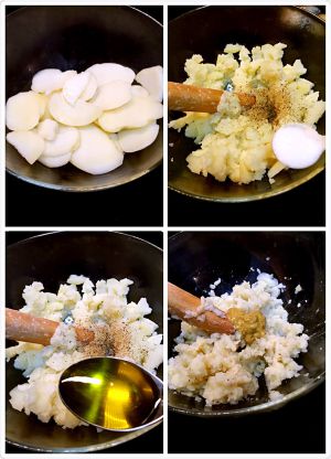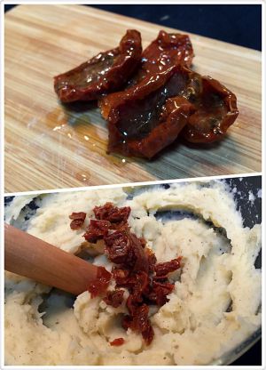 最后可以取4片油浸番茄切成小粒,拌入土豆泥中。