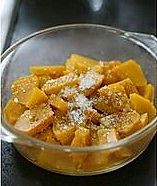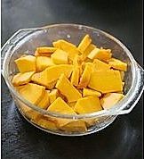 南瓜洗净去皮,切均匀小块,放入微波容器中微波高火四分钟;