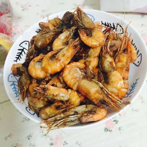 多放点油,放虾进去炸一下,变色后多炸一会。捞出