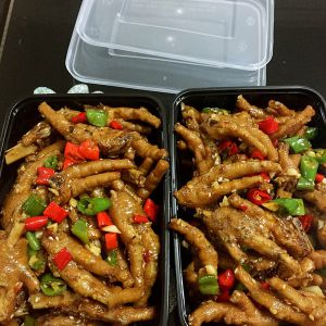 鸡爪洗净,清水煮2分钟,过凉水后剪掉指甲再一切两半。