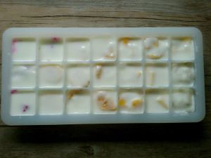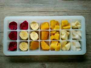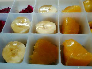 将切碎的果肉依次放入制冰格