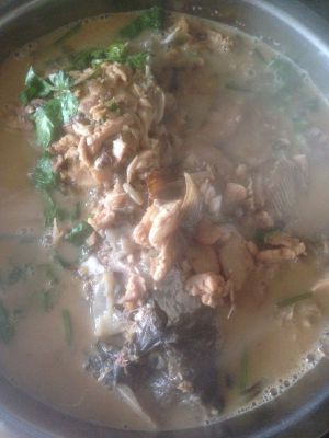出锅前品尝一下味道,如果鱼汤不够味可加入少量鸡精。(我家通常买活鲤鱼炖到时间会很鲜美,所以我不加)放入香菜,开吃吧,很美味的。我刚开始在妈妈的指导下做,所以鱼肉不太完整,外形不美,但味道超级棒的!鱼汤要多留啊,嘿嘿鱼汤泡饭。