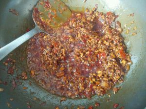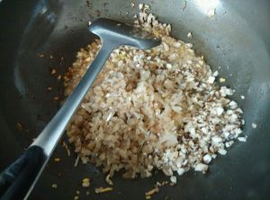 锅里热油,要多放一些。放入葱 、姜 、蒜 末爆香