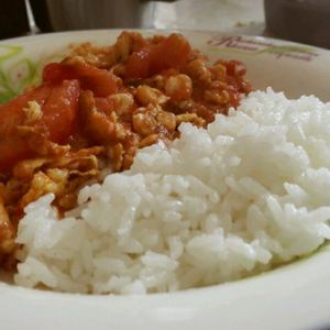 在锅中放入适量油,将鸡蛋放入锅中翻炒。