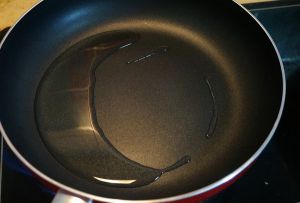 平底煎锅中倒植物油,比平时炒菜的油略多一点