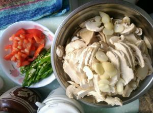 将食材洗净切好。松茸是薄皮菌,一定要薄皮