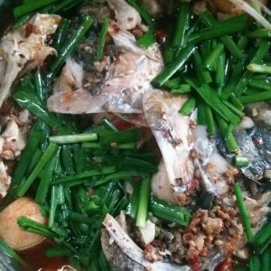 把所有菜洗好,切好,把鱼头用盐腌好免得沾锅底