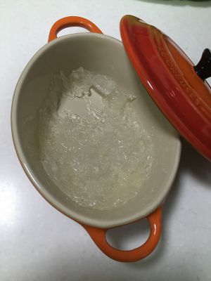 将挑毛后的燕窝带水放在容器中,用矿泉水浸没,隔水蒸,先开大火蒸,水开后,转小火蒸大约40分钟左右,就可以取出了。