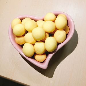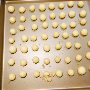 搓成大小均匀的一小颗。入烤箱中层170度10分钟左右。轻微上色即可。