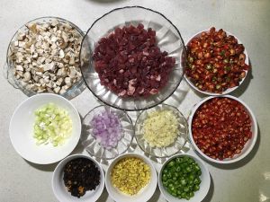 加入牛肉、香菇翻炒均匀,倒入水完全覆盖所有食材