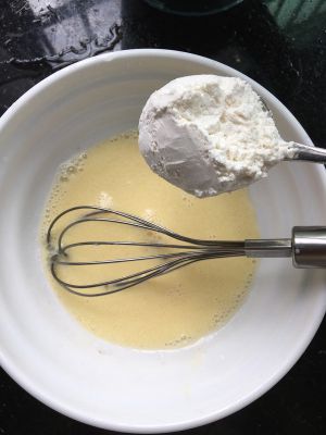 鸡蛋打散加入少许牛奶和面粉调成面糊