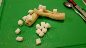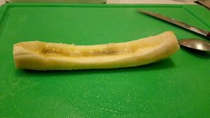 把香蕉剥好~像我这样把底面切平(*^ω^*)