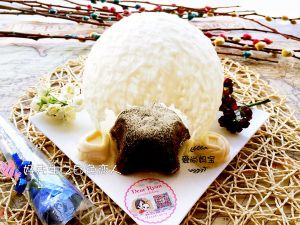 切开蛋糕,白色的巧克力奶油如熔岩一般涌出~