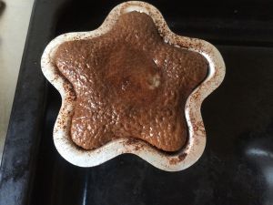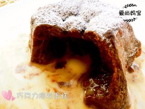 最佳状态为图上蛋糕周围成型,中间还为液体状态~出烤箱后冷却半小时~为了好脱模,模具上刷黄油,筛可可粉~吃的时候倒扣在盘子上~