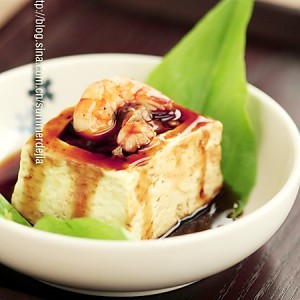 豆腐切成小方块,把中间挖一孔,放入微波炉盛器中;