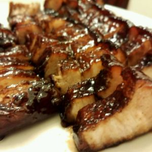 洒入米酒至酒完全挥发,放入冰糖,老抽,生抽,水,文火焖约1小时