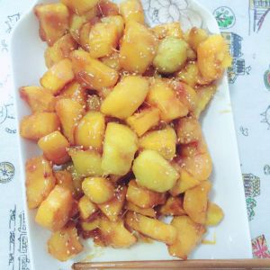 撒上白熟芝麻,就可以吃了,一道甜菜就做好了!