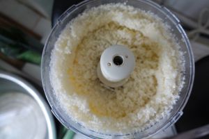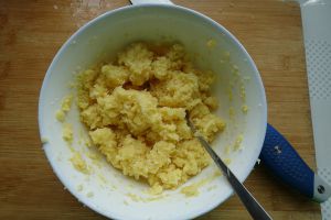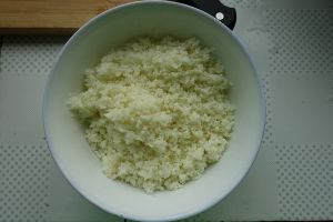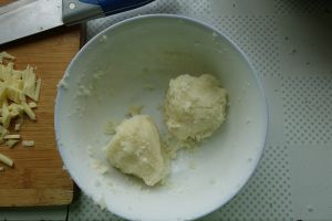 加入鸡蛋(我用的土鸡蛋,大概去壳40克上下)和切碎的马苏里拉;